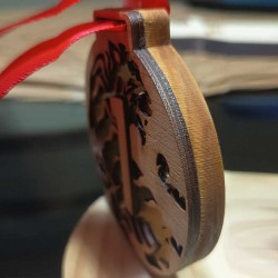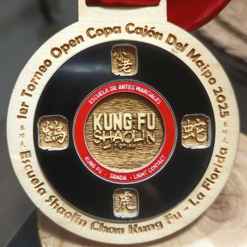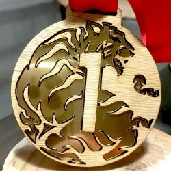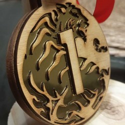 Medallas de madera personalizada para todo evento con troquel y grabado láser. Terminación con madera y acrílicos y cinta para colgar.